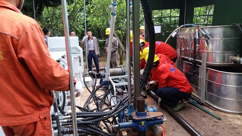 陽書記在查看項(xiàng)目現(xiàn)場,了解設(shè)備運(yùn)轉(zhuǎn)情況及工人操作后,對(duì)項(xiàng)目作出指導(dǎo):一是該項(xiàng)目是我院在深孔鉆探設(shè)備方面的革新及工藝的改革的試點(diǎn)項(xiàng)目,施工班組和管理人員務(wù)必高度重視,勇于挑戰(zhàn);二是要求項(xiàng)目組人員要在如何使設(shè)備經(jīng)濟(jì)高效的運(yùn)轉(zhuǎn)、發(fā)揮設(shè)備功效上探索研究;三是通過該項(xiàng)目歷練培養(yǎng)優(yōu)秀操機(jī)手,為今后類似設(shè)備的運(yùn)用儲(chǔ)存技術(shù)力量;四是通過對(duì)設(shè)備的熟悉、掌握,更加注重科技創(chuàng)新,以節(jié)約成本,推動(dòng)我院在深孔鉆探領(lǐng)域的新發(fā)展。
