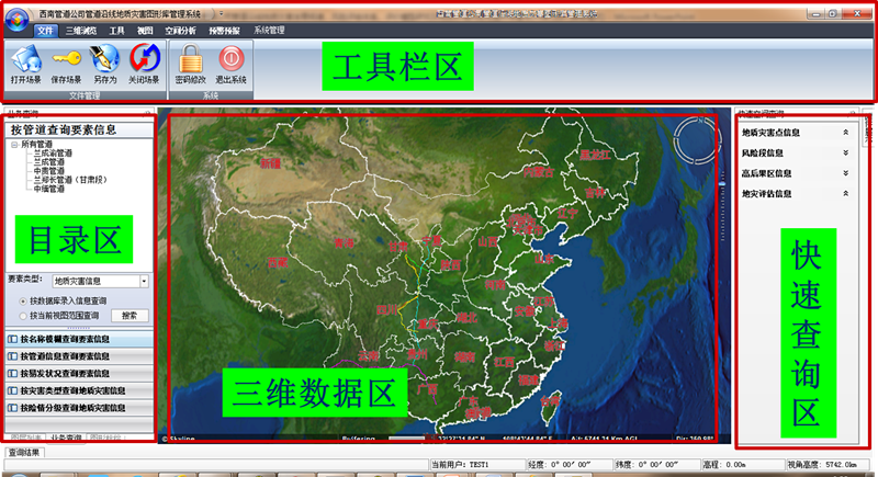 地質環境風險性圖形庫系統分層構建了管道基本數據、基礎地理、地質環境、地質災害等6大類、24小類、360余萬條數據的數據庫,以及三維場景、三維模型的建設。“所有的數據達到了TB級,而一個縣的地災詳查成果圖件也不超過500MB?!彼牡刭|工程公司信息技術室主任唐僑說道。