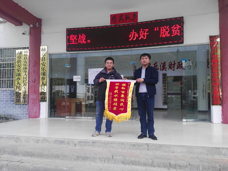 近日,我院獲得赫章縣安樂溪鄉鄉政府授予錦旗表彰,自2017年6月起,我院與中國地質科學院探礦工藝研究所聯合組隊開展烏蒙山連片貧困缺水區1:5萬水文地質調查工作。我院承擔了該項目奎香幅(G48E004010)的1:5萬水文地質調查和探采結合示范井的實施工作,直接解決了貧困缺水區群眾的飲水難和飲水安全問題,獲得了當地群眾的肯定,取得了良好的示范效果。
